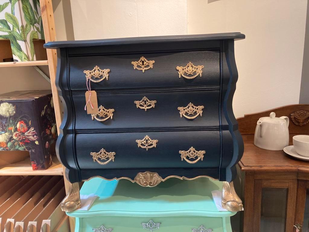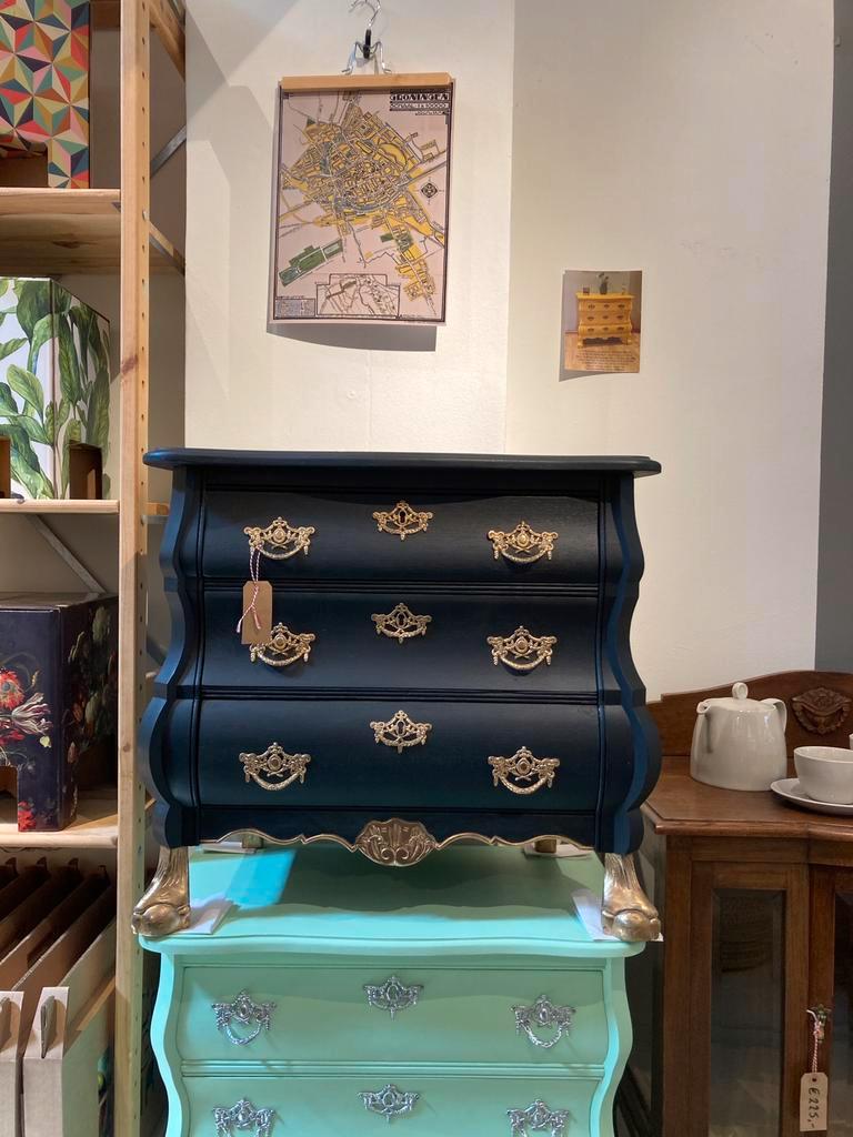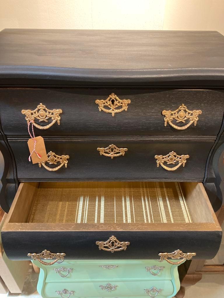 Buikkastje in warme kleur rood met dierenbehang in de lades.